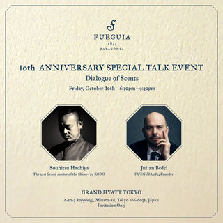 作品を通じ、自己との対話を探求してきた FUEGUIA 1833が、日本文化における「香道」の精神と交わることで生まれる新しい視点を、三者のクロストークを通じてお届けいたします。加えて、トークイベント終了後、当日の抽選にてご当選された方を対象に、ジュリアンのサイン会を実施予定です。