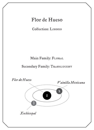 『Flor de Hueso』 は、静かで神秘的な空気をまとい、記憶の奥深くに眠る感覚を呼び覚ます香りです。目には見えない魔法のように、静かに広がる香りをぜひご体感ください。